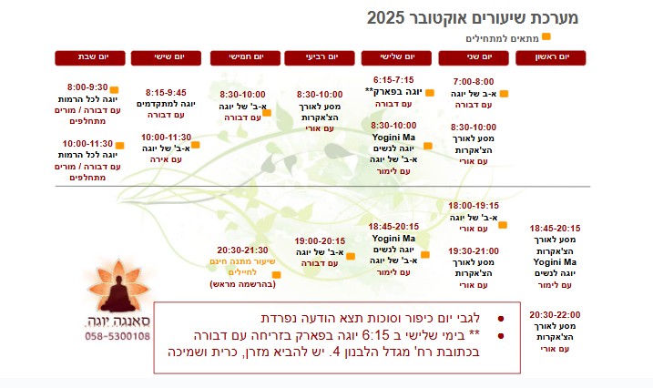 בוקר של יוגה / יוגה בשבת - שיעור יוגה לכל הרמות
